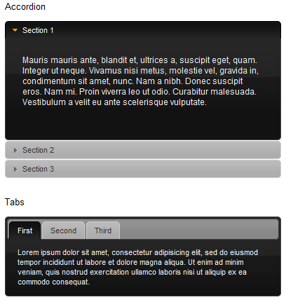 - Puedes elegir usar el acordión y la sección con pestañas al mismo tiempo, o solo uno.